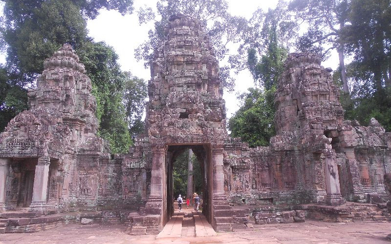 Le temple Prasat Phrea Khan a été laissé en grande partie non restauré, avec de nombreux arbres et végétaux qui ont repris leurs droits.